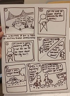 I spent about two weeks observing different individuals, both their own approaches to travel planning as well as their interactions with makeshift experience prototypes prepared by myself. This needfinding helped my team establish our design challenge and highlighted some basic design considerations going forward: