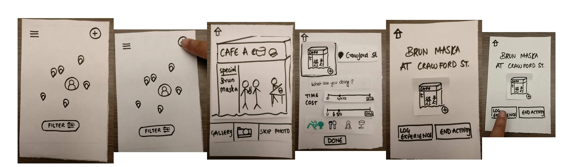 Storyboard sessions were scattered throughout the paper prototyping period to try to foresee possible interactions needed for a coherent user flow.